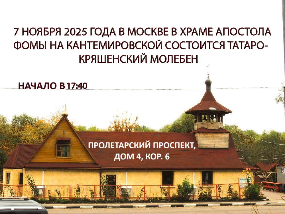 - 7 ноября 2025 года в Москве в Храме апостола Фомы состоится татаро-кряшенский молебен